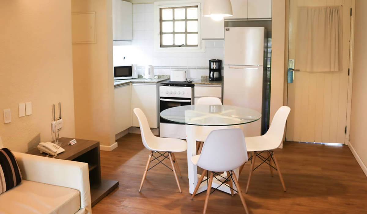 Las unidades, para 4 y 6 personas, están totalmente equipadas y cuentan con amplias terrazas, cocina completa integrada, desayunador, 3 baños completos, hidromasaje, cochera con pérgola, parrilleros, led TV y Wi-Fi.Todas las propiedades acceden a un exclusivo parque con diseño paisajístico, clubhouse, hidromasaje, vestuarios, gimnasio, sauna, canchas de tenis con polvo de ladrillo, piscina infantil, piscina descubierta con deck y solárium, y a toda la infraestructura de amenities y servicios del resort.